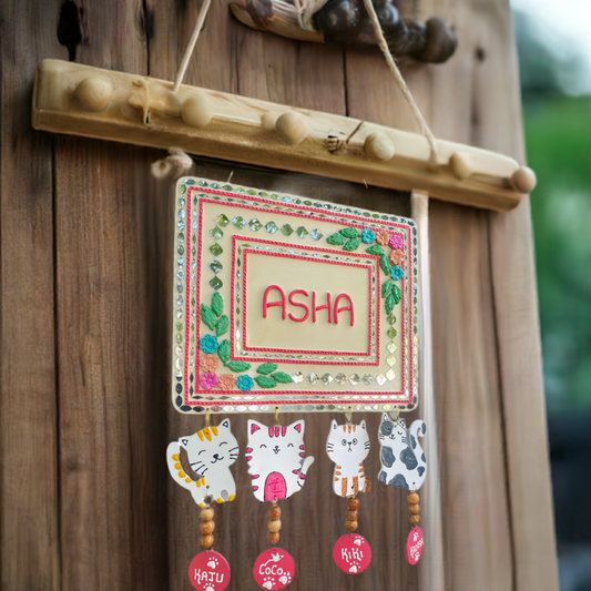 Lippan Art Rectangle Nameplate with Hanging Cat Shapes